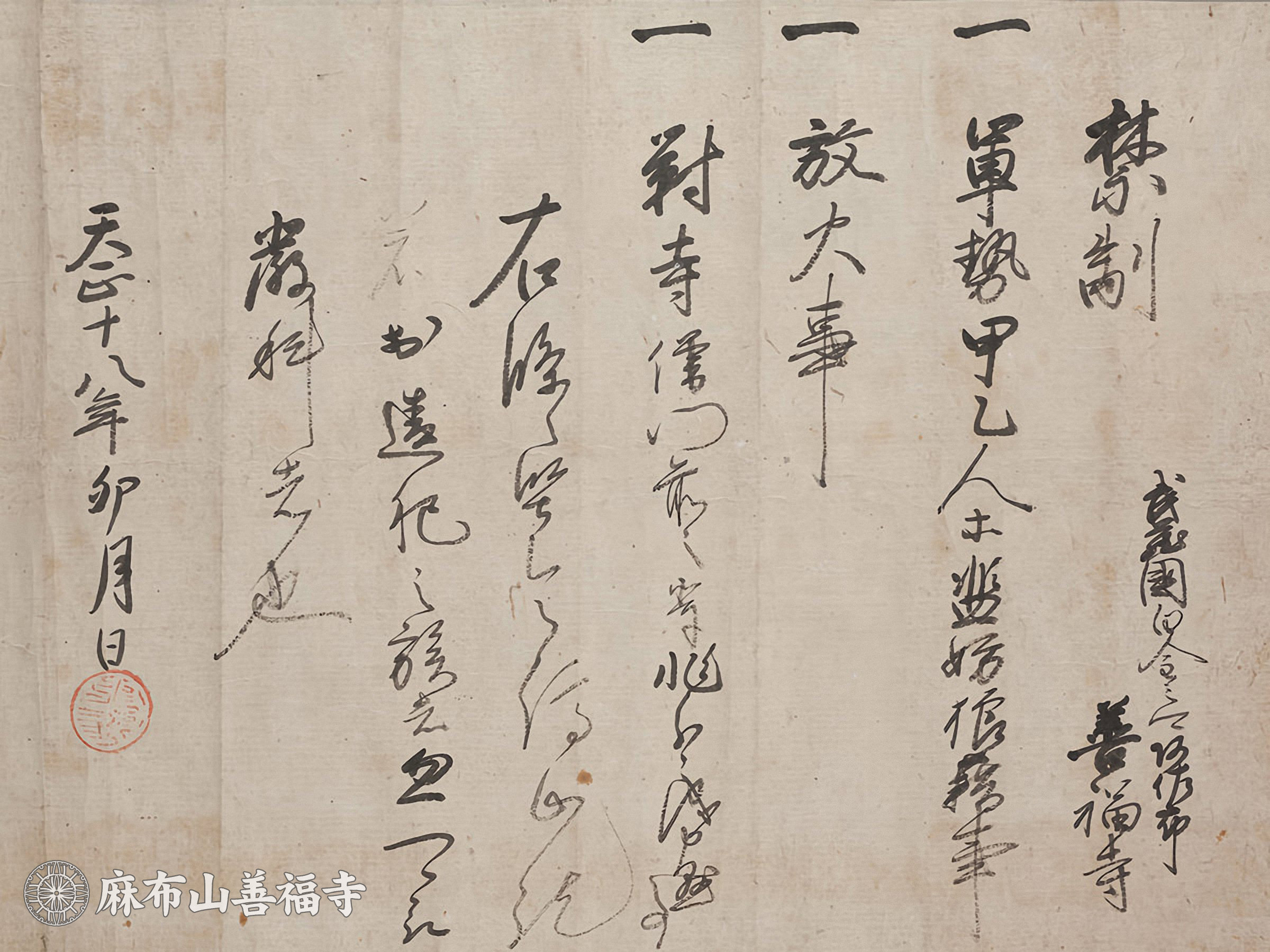 当寺は、文永3年(1266年)8月10日、亀山天皇の勅願寺となり、北条、足利、豊臣、徳川等諸家より朱印を下附され保護されていました。