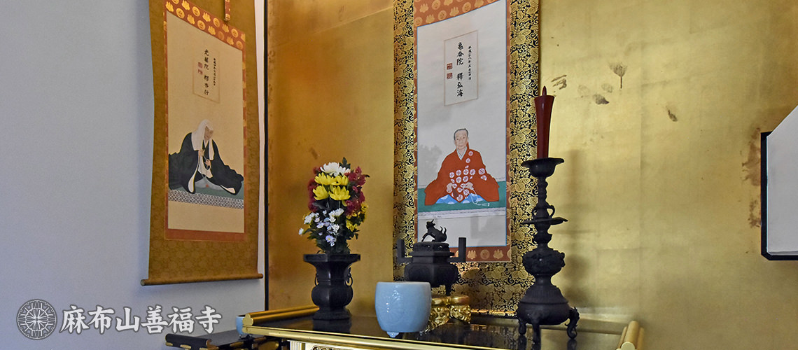 開山堂 開山堂には、国の重要文化財に指定されている了海上人の木像をはじめ上人が親鸞聖人から形見として授けられた金泥八字之名号、聖人直筆の白鷺の御名号、豊臣秀吉の朱印状、本願寺十一世顕如上人から贈られた旗印などが納められています。 2024年3月、開山堂は修復されました。
